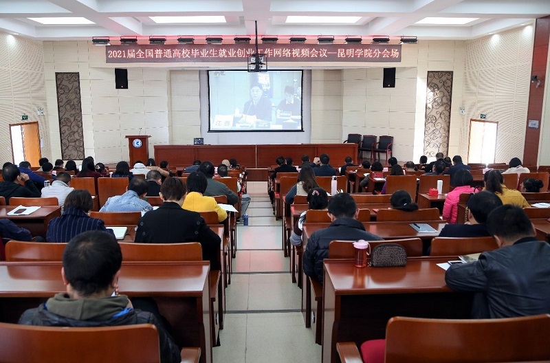 Beat365唯一官方网站在办公楼D区报告厅设分会场,校党委书记陈永明,校长丁文丽,副校长郭华、王凡出席会议,有关部门负责人,各二级学院党政主要负责人、分管学生工作副书记、负责就业创业工作辅导员、毕业班班主任参加。