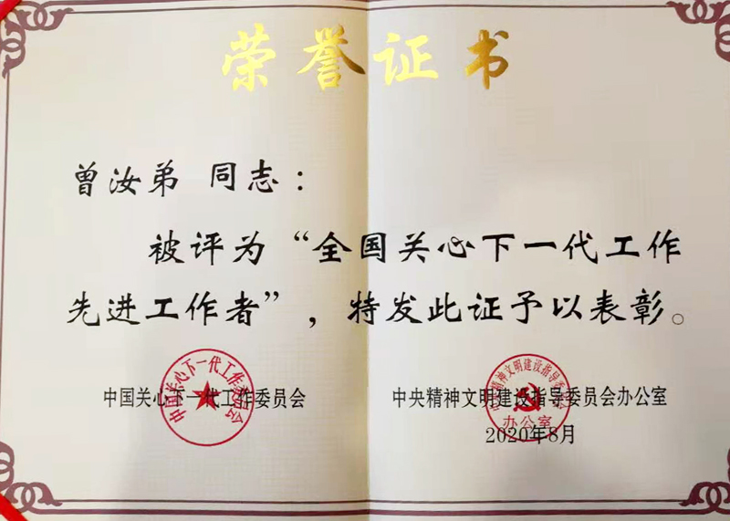近日,中国关工委和中央文明办联合发布《关于表彰全国关心下一代工作先进集体和先进个人的决定》,表彰先进集体和个人。学校84岁的离退休教授曾汝弟荣膺“全国关心下一代工作先进工作者”称号。