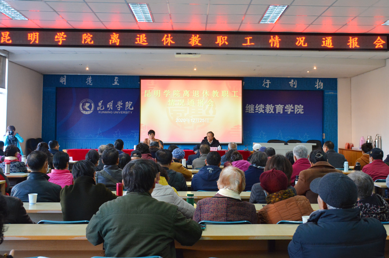 12月25日,学校在昆师路校区召开2020年离退休教职工情况通报会,通报学校建设发展情况。学校党委副书记熊晶、王文成出席会议,学校老干部工作委员会成员单位负责人、140余名离退休教职工代表参加会议。会议由党委副书记熊晶主持。