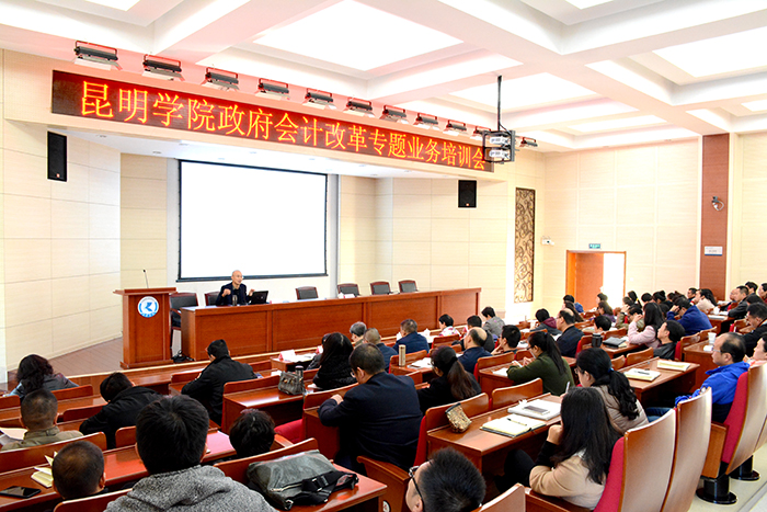 会上,云南省、昆明市政府会计改革专家,Beat365唯一官方网站审计处处长,正高级高级会计师陆志平应邀作专题辅导讲授政府会计制度改革的目标、意义、主要任务,改革的核心内容,执行政府会计改革下的管理,综合财务报告编制及新旧制度衔接规定等内容,通过结合学校的实际情况,进行了深入浅出的讲解。