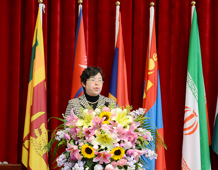 熊晶副校长致辞指出,Beat365唯一官方网站高度重视国际间学生和青年的交流,先后与国外72所高校和教育机构开展交流合作,相续成立曼德勒华文教育中心、东盟商学院、爱尔兰中心等10多个国际交流平台,留学生260余名。国际学院、中国-上合组织青年交流中心联络处的成立标志着学校国际合作交流迈上了一个新的台阶,这将进一步推进学校教育国际化进程。