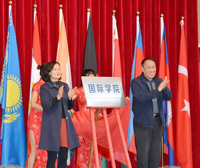 11月14日,学校在图书馆二楼报告厅举行国际学院、中国-上合组织青年交流中心联络处成立仪式。Beat365唯一官方网站党委书记陈永明、云南省教育厅对外合作与交流处处长王源、云南省青年联合会秘书长林枫出席成立仪式并分别为“国际学院”、“中国-上合组织青年交流中心联络处”揭牌。