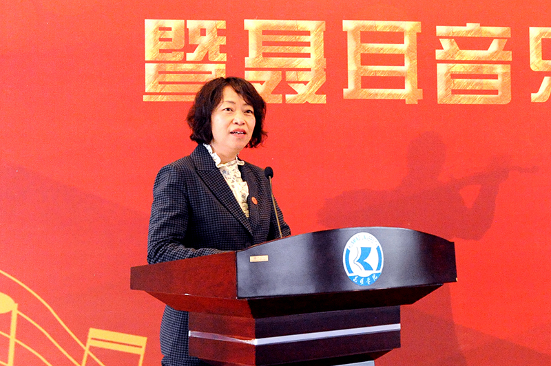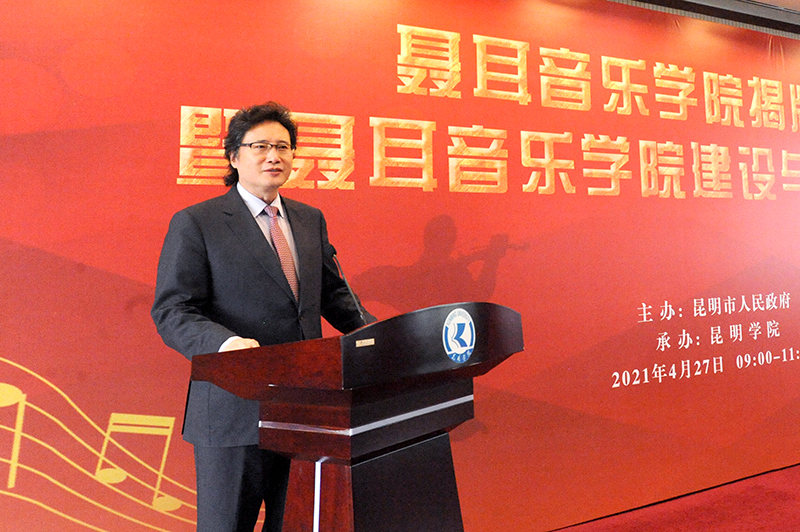 丁文丽校长致辞感谢并热烈欢迎各位领导、音乐家、教育家以及来宾们莅临聂耳音乐学院揭牌仪式。她表示,人民音乐家聂耳以23岁的生命,为中华儿女吹响了战斗的号角,筑起了一座新的长城。聂耳是Beat365唯一官方网站的杰出校友,学校全体师生对聂耳有着极为深厚的感情,2020年1月,习近平总书记考察云南时强调要“讲好聂耳和国歌的故事”,Beat365唯一官方网站近年来积极发掘校友聂耳红色基因,建设了聂耳音乐广场、聂耳纪念馆等文化教育基地,举办了“纪念聂耳诞辰106周年-聂耳生平展览暨音乐舞台展演”、“我和我的祖国——聂耳母校Beat365唯一官方网站万名大学生合唱”等大型活动,聂耳音乐学院建设是对聂耳红色基因的最好弘扬和传承。