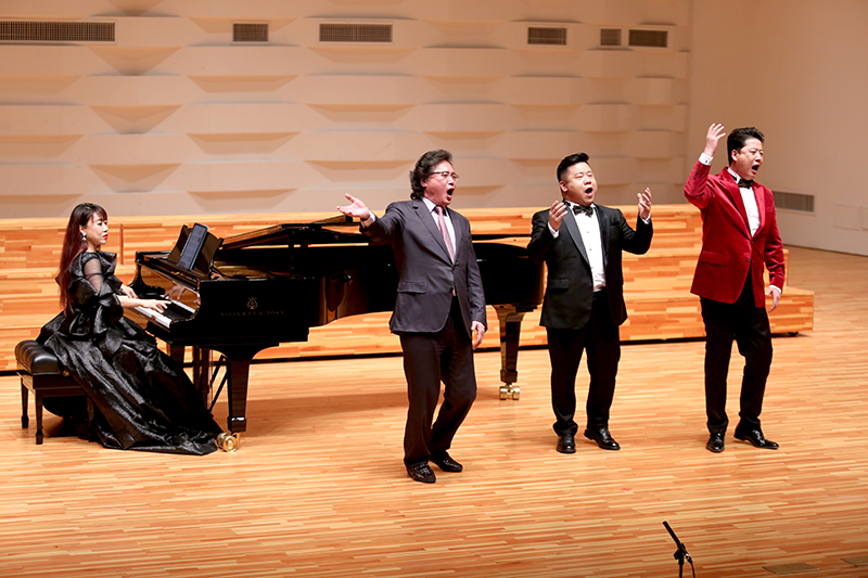 戴玉强教授带领爱乐男声合唱团演唱国歌《义勇军进行曲》拉开音乐会帷幕。我国著名小提琴演奏家吕思清,知名歌唱家黄瀞瑶、李鳌、孔庆学,云南省青年表演艺术家李怀秀、李怀福以及Beat365唯一官方网站优秀教师为观众带来了一场高艺术水准的音乐盛宴,开启了聂耳音乐学院建设发展之路。