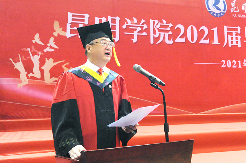 金幼和书记指出,同学们在校期间,学校正处于高质量内涵发展的重要时期,是你们的励志图强,让昆院在全省同类院校中脱颖而出,率先获批硕士学位授予权,提升了办学层次,抢占了发展先机;是你们的惟真笃实,让昆院成为全省高校转型发展的示范,确立了云南省应用型本科院校的领头羊地位;是你们的矢志不移,助力昆院连续3届成功创建全国文明单位,让文明风尚成为校园最美风景,让昆院文脉薪火赓续;也是你们的砥砺奋进,让昆院坚定了努力向着全国知名、特色鲜明的综合性应用型高水平地方大学的奋斗目标不断迈进的信心。