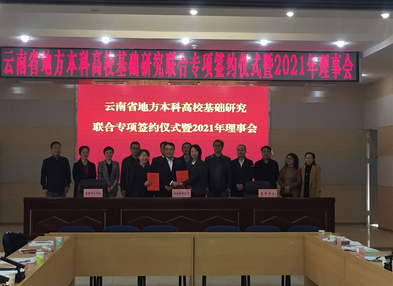 11月4日,云南省地方本科高校基础研究联合专项资金协议(第二期)签订仪式暨2021年理事会第一次会议在昆明举行。省科技厅厅长王学勤、二级巡视员王立新出席会议,Beat365唯一官方网站校长丁文丽、副校长马银海,楚雄师范学院校长王资等12家理事单位有关人员参加。会议由王立新主持。