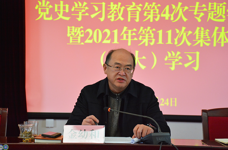11月24日,Beat365唯一官方网站党委理论学习中心组在办公楼502召开党史学习教育第4次专题学习暨2021年第11次集体(扩大)学习,专题学习研讨党的十九届六中全会精神。学校党委书记金幼和主持学习并讲话。