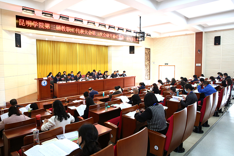 3月30日,学校第三届教职工代表大会第三次会议在办公楼D区报告厅胜利召开。学校党委书记金幼和出席会议并讲话,党委副书记、校长丁文丽作《贯彻新发展理念 落实“十四五”规划任务 全面推进学校高质量发展》行政工作报告。党委副书记、工会主席王文成主持会议。
