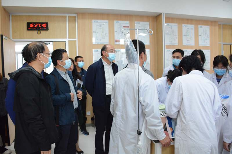 金幼和详细了解了学校临床学院建设项目推进情况,实地参观了在建教室、看望了现阶段在医院实习的学生,关心关切同学们的学习生活。