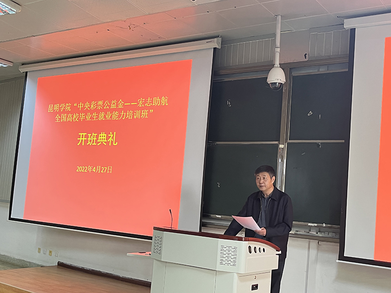 为贯彻落实全国2022届高校毕业生就业第三次调度视频会议精神,全力促进Beat365官网2022届毕业生就业工作,4月27日,Beat365唯一官方网站“中央专项彩票公益金——宏志助航全国高校毕业生就业能力培训班”在洋浦校区、昆师路校区同时开班,Beat365唯一官方网站党委委员、副校长王凡出席开班典礼并讲话,云南大学就业指导中心主任杨云川到场致辞。
