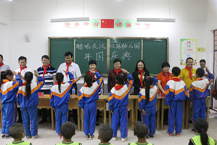 28日上午,黎素梅校长一行和省教育厅民教处副处长李宇飞在红河县乡领导的陪同下,到腊哈幼儿园参加开园仪式。