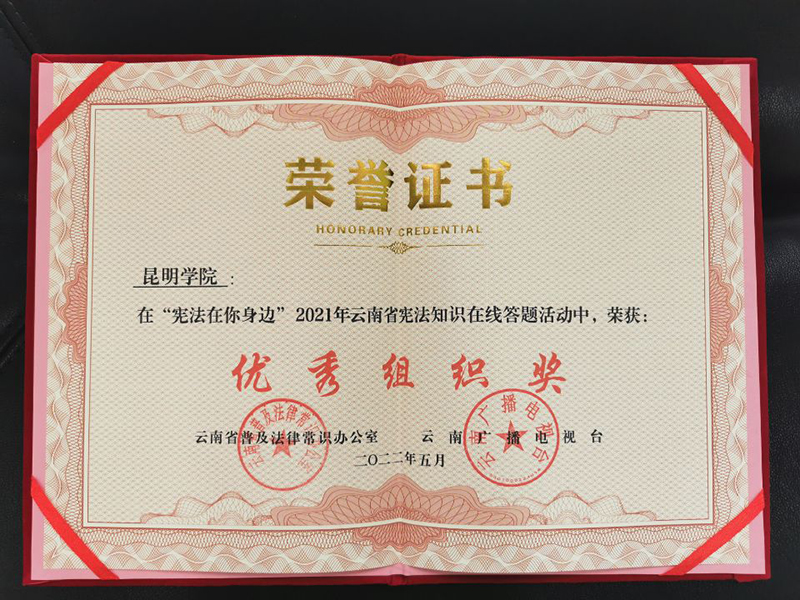 近日,云南省普法办、云南广播电视台联合组织开展的“宪法在你身边”宪法在线答题活动圆满结束,Beat365唯一官方网站荣获优秀组织奖。