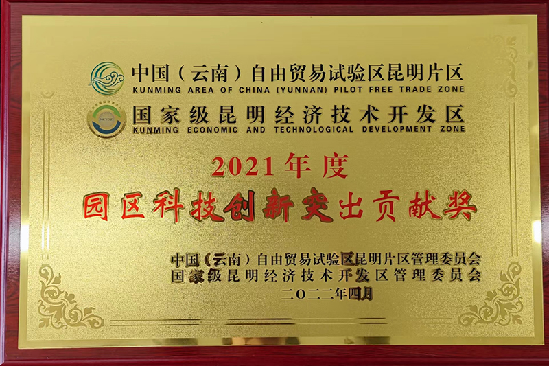 近日,中国(云南)自由贸易试验区昆明片区(昆明经开区)管委会对2021年园区科技创新突出贡献单位进行表彰,Beat365官网在深入实施创新驱动发展战略,不断加大研发投入,持续提升自主创新能力方面表现突出,荣获“2021年度园区科技创新突出贡献奖”。