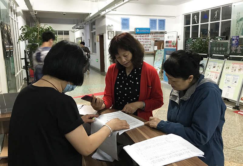 在宿舍管理处,李莉副书记仔细查看询问了各学院干部教师、辅导员、班主任走访学生宿舍情况,希望后勤宿管老师关心关爱学生,做好值班值守,为同学们提供优质的宿舍保障服务。