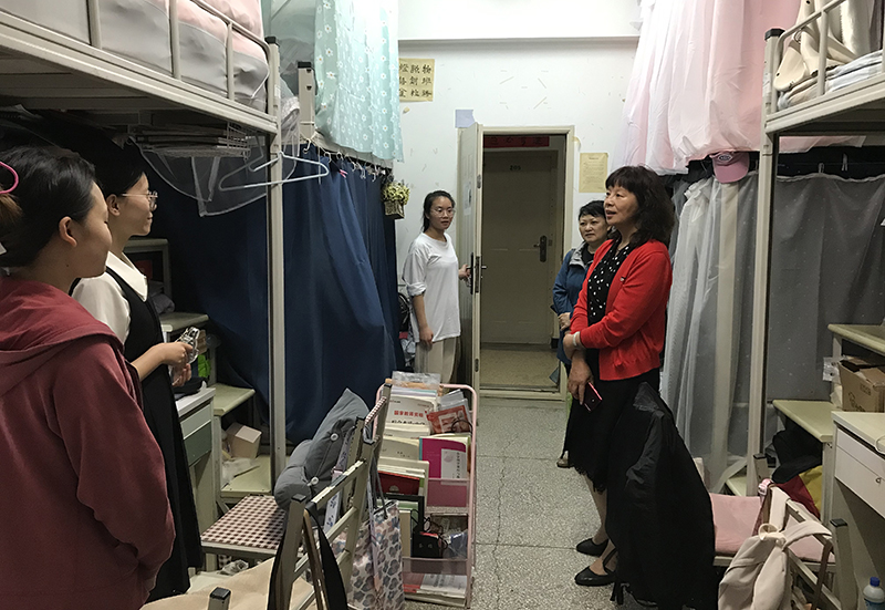 525日晚,党委副书记李莉带领机关值班干部走访学生宿舍,了解学生近期学习生活情况。