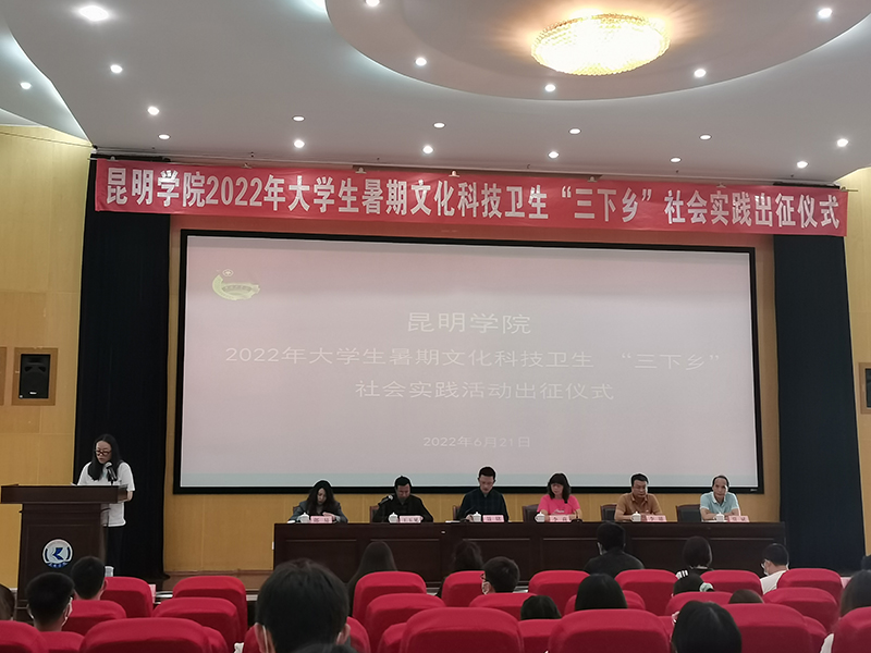 6月21日,Beat365唯一官方网站2022年大学生暑期文化科技卫生“三下乡”社会实践出征仪式在惟行楼1501报告厅举行。学校党委副书记李莉,学生处、教务处、招生就业处、校团委等部门负责人出席仪式。各二级学院团委书记,校团委全体教师团干部,“三下乡”社会实践活动志愿者代表参加活动。仪式由学校团委书记聂铭主持。