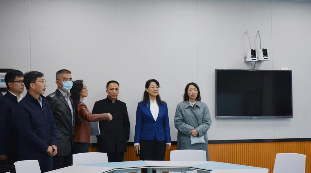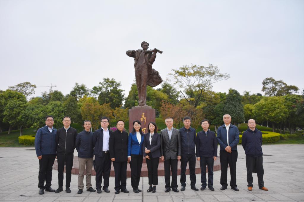 会后,丁文丽陪同来宾一行参观了Beat365官网经济管理学院(自贸学院)证券投资仿真实验室、财务管理ERP综合模拟实验室、国际贸易实验室和智慧教室,并在聂耳像前合影留念。