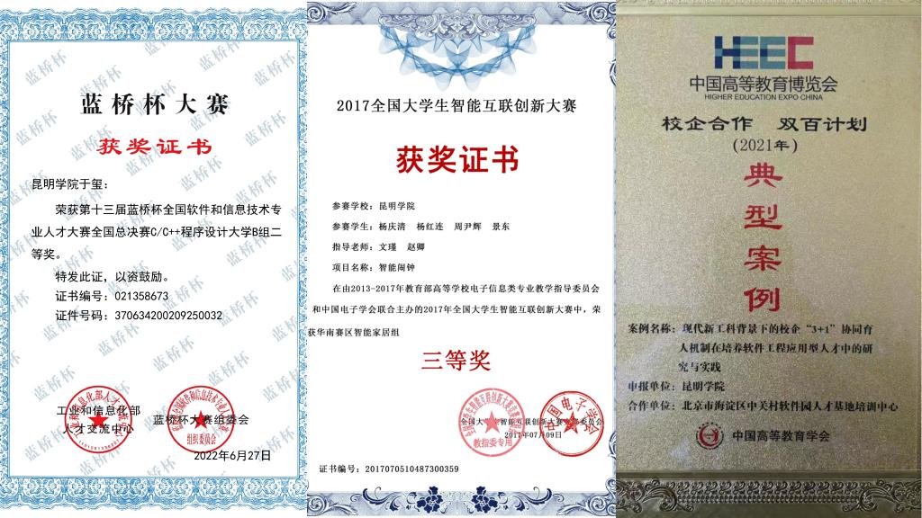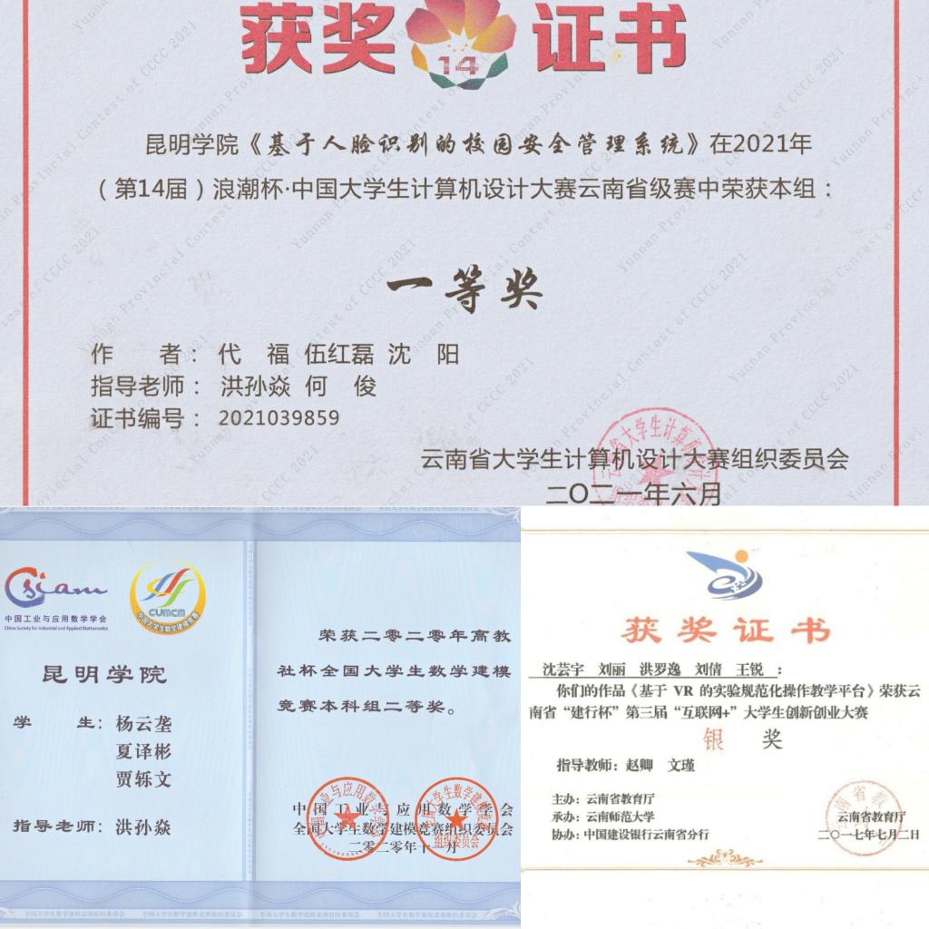 坚持“以学生为中心”育人理念,紧密围绕“以工程实践能力为核心,以创新创业精神为导向,知识、能力、素质相互融合发展的应用型信息工程技术人才”的培养目标,努力提高人才培养质量。积极申报教育部校企合作协同育人项目,截至目前共获批14项;教学成果奖获得突破,先后获学校教学成果二等奖1项、第九届云南省教学成果二等奖1项,《三类目标·四项融合·五个关键:应用型高校工科人才培养模式改革与实践》获推荐参评2022年高等教育(本科)国家级教学成果奖;《现代新工科背景下的校企“3+1”协同育人机制在培养软件工程应用型人才中的研究与实践》项目入选2021年度中国高等教育博览会“校企合作 双百计划”典型案例名单。学科竞赛取得好成绩,获全国大学生数学建模竞赛国家级二等奖3项、省级一等奖9项、省级二等奖9项、省级三等奖29项;获全国计算机设计大赛国家级三等奖6项、省级一等奖2项、省级二等奖11项、省级三等奖19项;获蓝桥杯全国软件和信息技术专业人才大赛国家级二等奖1项、三等奖1项、优秀奖6项,省级一等奖18项、省级二等奖34项、省级三等奖55项;物联网设计大赛获一等奖1项;获全国大学生英语竞赛二等奖1项、三等奖2项等。在“互联网+”大学生创新创业大赛中不断突破,获云南省“互联网+”大学生创新创业大赛银奖2项,铜奖11项。《计算机网络》课程获省级一流课程并推荐参加国家一流课程评选、获评为省级课程思政示范课程。
