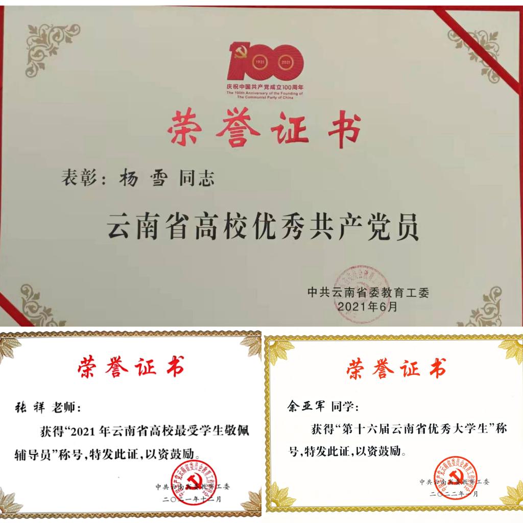 积极开展一流党建创建活动,党支部战斗堡垒作用和党员先锋模范作用充分发挥,党建引领作用充分显现,在教学科研、管理服务、脱贫攻坚等方面涌现出一批先进集体和个人。学院杨雪老师先后获评“中国好人榜——敬业奉献好人”“云南省脱贫攻坚先进个人”“云南省高校优秀共产党员”;张祥老师获评“2021年云南省高校最受学生敬佩辅导员”;余亚军同学获评“第十六届云南省优秀大学生”;徐章燎同学荣获2022年Beat365唯一官方网站首届“最美昆院人(优秀学子奖)”荣誉称号。学院教师在教学、科研等方面先后荣获云南省科学技术进步奖一等奖、中国有色金属工业科学技术二等奖、中国电力企业联合会2021年度电力创新奖一等奖(省部级)、第八届全国高校电工电子基础课程实验教学案例设计竞赛(鼎阳杯)西部赛区竞赛三等奖。