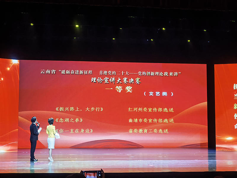 为深入贯彻落实习近平总书记“讲好聂耳和国歌的故事”重要指示精神,学院充分挖掘红色资源创作音乐剧《你一直在身边》,采用音乐、诗歌、舞蹈等表现形式,把聂耳精神融入其中。作品先后荣获全省教育系统“喜迎党的二十大——云岭师生说”理论宣讲比赛特等奖、云南省“砥砺奋进新征程 喜迎党的二十大——党的创新理论我来讲”理论宣讲大赛文艺类一等奖。
