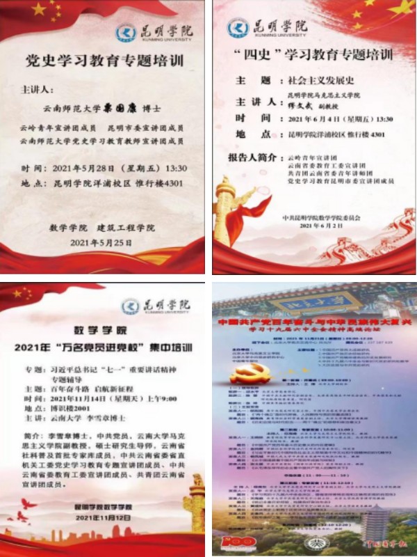 抓责任、促落实,全面聚焦高质量党建引领。学院在数学一级学科硕士点申报、数学文化营造、环境育人作用发挥、数学与应用数学师范专业教育部二级认证等工作中发挥党建引领作用。学校2022年党支部分类定级数学学院4个师生党支部定级等次100%“先进”,其中学生第一党支部被命名为“规范化建设示范党支部”。