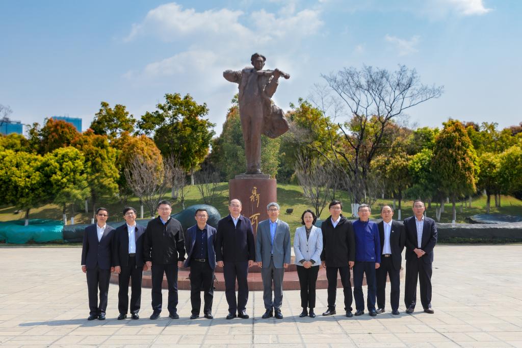 会后,金幼和、丁文丽等校领导陪同嘉宾参观了校园,并在聂耳像前合影留念。