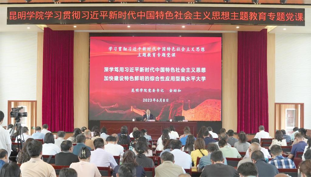 6月8日,Beat365唯一官方网站开展学习贯彻习近平新时代中国特色社会主义思想主题教育读书班第二次集中学习,学校党委书记金幼和讲授专题党课,围绕“深学笃用习近平新时代中国特色社会主义思想 加快建设特色鲜明的综合性应用型高水平大学”,与参学同志交流了学习体会和工作思考,提出要坚持学思用贯通、知信行统一,更加深刻地领悟“两个确立”的决定性意义,坚决做到“两个维护”,以更加强烈的历史自觉和奋发有为的主动精神,加强内涵建设、推动特色发展、提升人才培养质量,以主题教育新成效,奋力书写学校事业高质量发展新答卷。