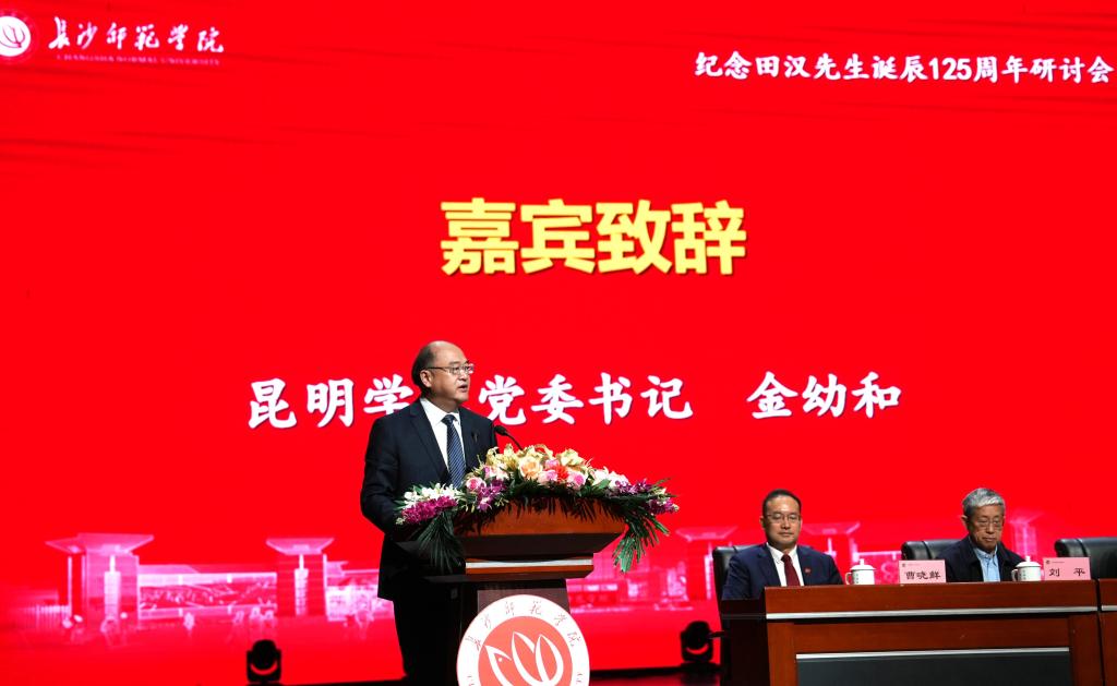金幼和代表学校对长沙师范学院成功举办纪念田汉先生诞辰125周年研讨会活动表示祝贺。他表示,两校自去年签订共同讲好“国歌的故事”合作框架协议以来,互访交流频繁,共同组织的活动也取得了很好的效果,下一步应该更加紧密地持续深化各个方面的合作交流。长师的办学理念、办学思路和一些创新发展的举措值得我们深入的学习和借鉴,希望两校今后以“国歌”为纽带,在人才培养、师资队伍建设、服务社会等方面展开深度合作,推动两校育人资源共享共建,促进教育高质量发展。
