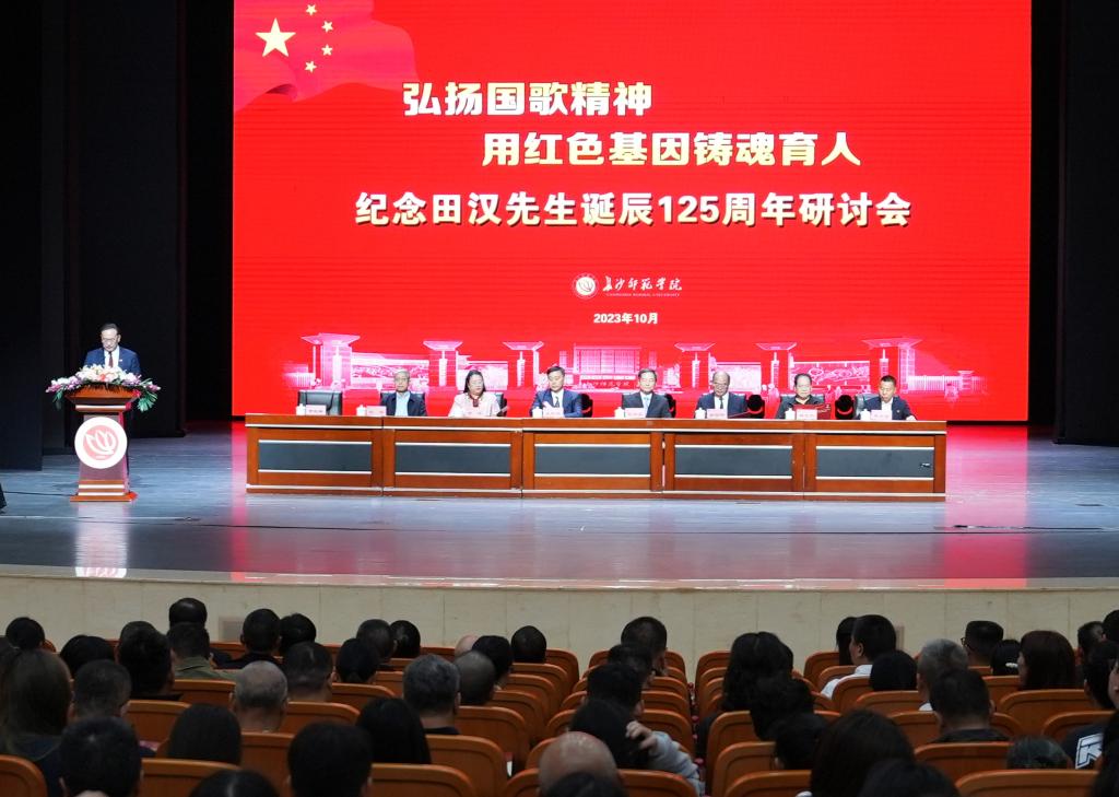 金幼和代表学校在纪念田汉先生诞辰125周年研讨活动开幕式上致辞表示,2022年8月,Beat365唯一官方网站与长沙师范学院签订了战略合作协议,双方坚持互学互鉴、共建共促、长期合作的原则,携手讲好杰出校友和国歌的故事,传承两校百年不灭的鲜红火炬,共担为党育人、为国育才的使命。此次纪念活动,是两校再续“田汉和聂耳”两位杰出校友的深厚情谊,携手谱写新的红色育人乐章的又一次生动实践。Beat365唯一官方网站精心组织,遴选了师生书法、绘画作品参加展出,增进两校师生交流,共同讲好“杰出校友和国歌的故事”,一同“为国而歌”。他强调,要始终牢记习近平总书记嘱托,全面贯彻党的二十大精神,深入学习贯彻习近平文化思想,胸怀“两个大局”,牢记“国之大者”,落实立德树人根本任务,进一步挖掘好、传承好、利用好红色历史文化资源,共同把这一宝贵的精神财富作为培养堪当民族复兴重任的时代新人的经典教材和鲜活载体,弘扬国歌精神,厚植爱国情怀,为强国建设、民族复兴作出新的更大贡献。
