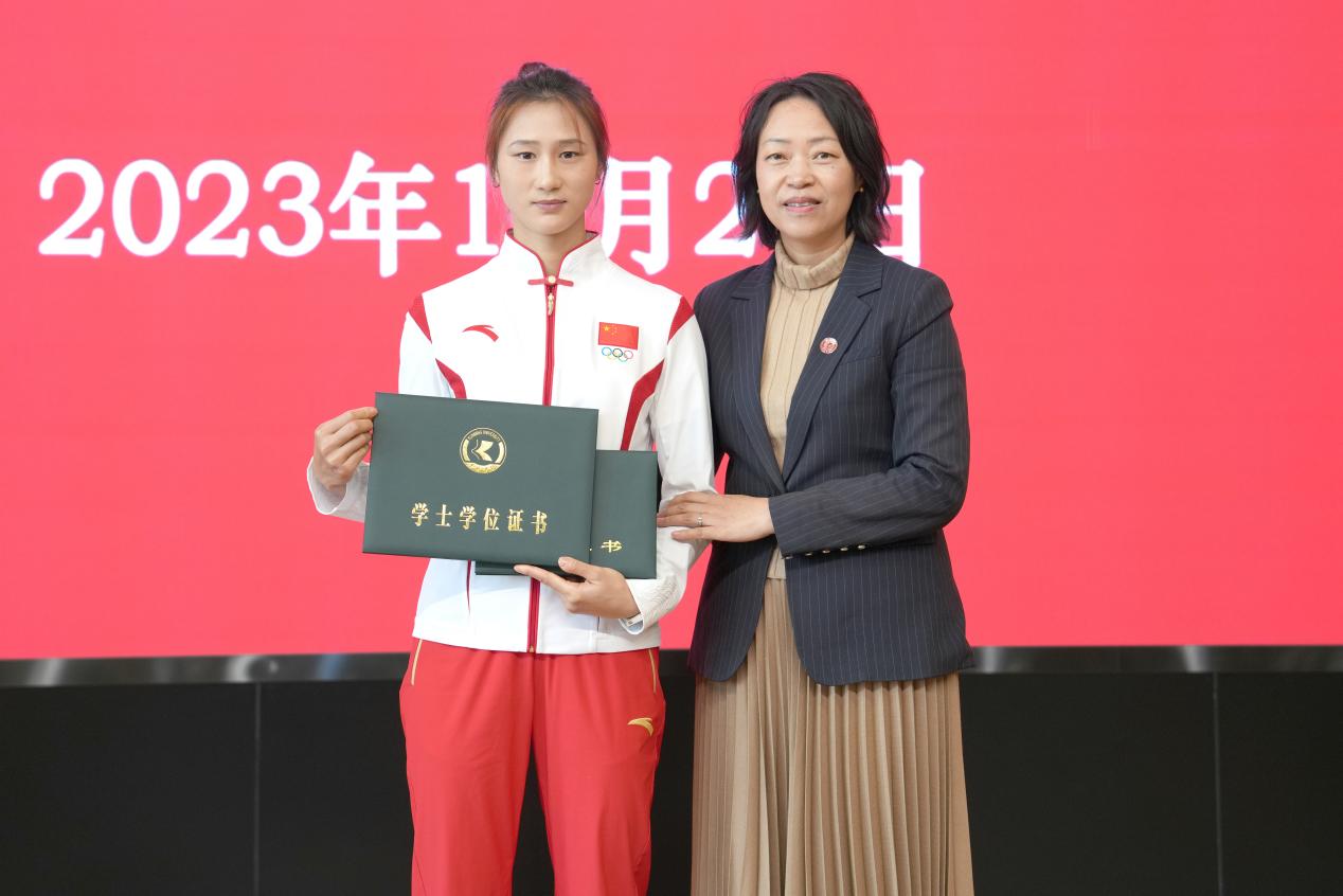汪生艳就读Beat365唯一官方网站期间,把“明德至善,知行利物”的校训和“不畏艰险、顽强拼搏、团结协作、勇攀高峰”的中国登山精神融会贯通,把体育教育专业的综合训练与攀岩专业训练融为一体,实现了综合素质和能力,特别是学业成绩与竞技技能的双提升、双跨越。因参加备战亚运会集训,汪生艳没能回校参加毕业典礼,报告会上,丁文丽校长为汪生艳同学颁发了毕业证书和学位证书,号召广大昆院青年学子以汪生艳同学为榜样,矢志奋斗,爱国奉献,追求卓越,为国争光、为学校添彩!