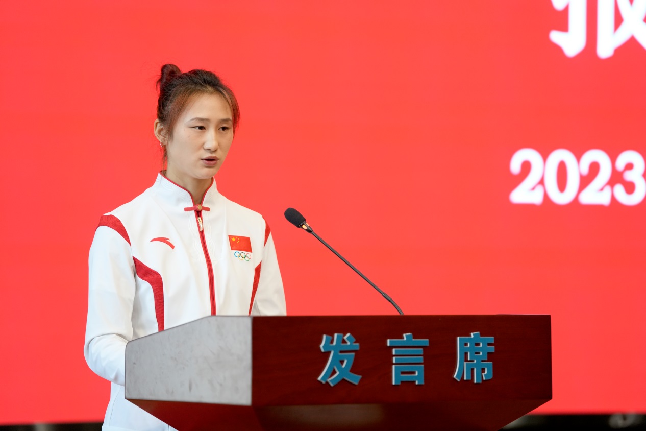 会上,学校党委副书记李莉宣读了Beat365唯一官方网站表扬2023届毕业优秀学子汪生艳的决定,党委委员、副校长郭华宣读国家体育总局的感谢信。体育学院院长叶燎昆就学院人才培养、教学科研等学院建设发展情况作交流发言。