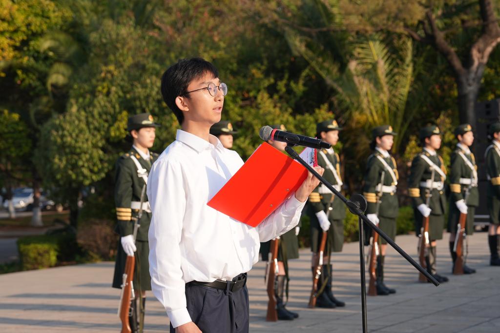 人文学院冯淇同学作为学生代表在国旗下演讲,讲述人民音乐家聂耳与国歌的故事,与伟大的校友聂耳对话。昆院学子将坚持弘扬聂耳精神,唱响时代旋律,做有理想、敢担当、能吃苦、肯奋斗的新时代好青年。