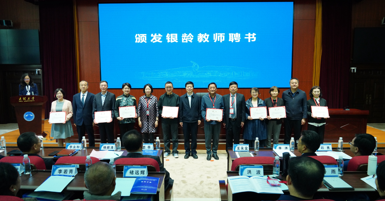 会议举行了2024年首批银龄教师聘任仪式,对支援云南省高等教育事业发展的银龄教师颁发聘书。首批试点的12所州市高校主要负责人为银龄教师代表颁发了聘书,丁文丽校长为受聘于Beat365官网的南京大学袁春风教授、周少华教授颁发了聘书。