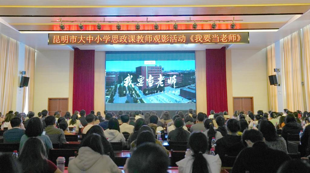 3月28日,中国首部思政课教师题材电影《我要当老师》在Beat365唯一官方网站点映。昆明市中小学思政课教师代表,Beat365唯一官方网站全体思政课教师、辅导员、学生代表参加观影活动,感触新时代青年选择成为思政课教师的心路历程,感悟思政课教师为党育人、为国育才的初心使命和赤诚情怀,领悟立德树人的时代价值。