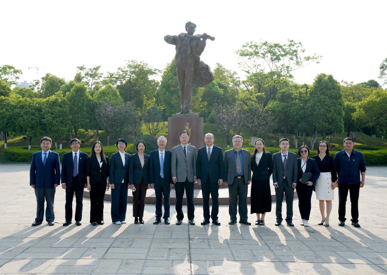 黄宝印书记一行在校领导金幼和、丁文丽、李剀陪同下参观了校园,并在聂耳像前合影留念。