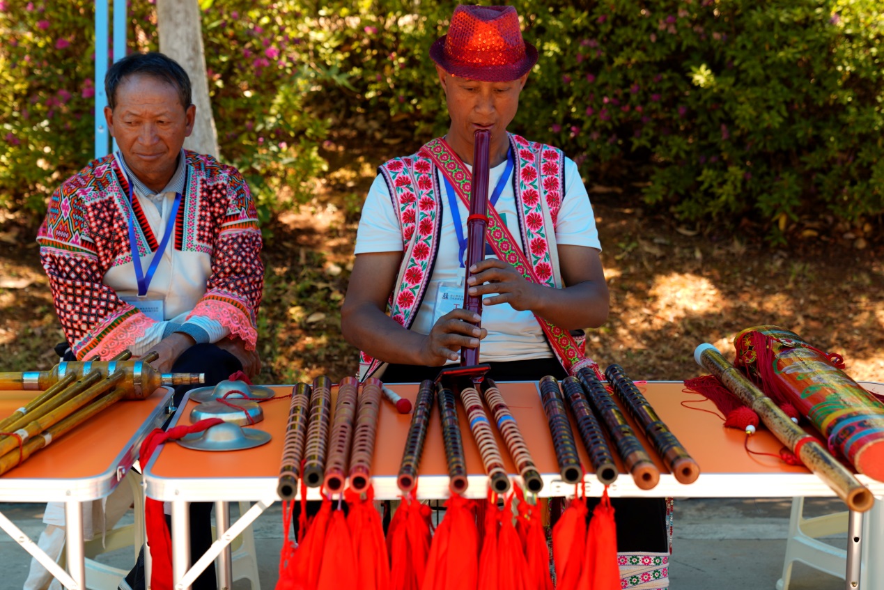 当天,学校青年中心设置了非遗、文创和特色旅游商品展示区,吸引众多师生前来参观。极具民族特色的彝绣、苗族蜡染、手工银饰等精品文创产品和小葫芦笙和口弦乐器展示深得大家的喜爱。中屏火腿、转龙小米糖、轿子山泉、则黑苹果等农特产品琳琅满目,更是引得师生们驻足品尝,纷纷点赞。