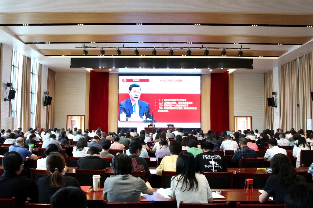 学校党委书记金幼和主持报告会。党委副书记、校长丁文丽等校领导出席。全体中层干部,纪检、组织、宣传、统战等部门人员,全体思政课教师,学生代表到场聆听。