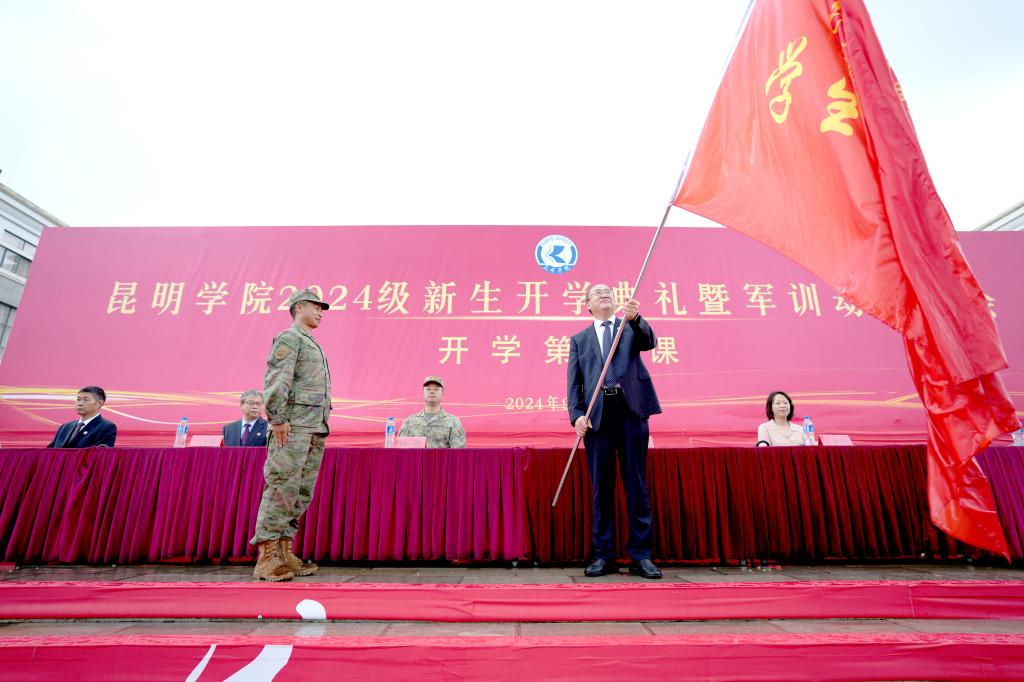 会上,金幼和为Beat365唯一官方网站2024级新生军训团授旗,军训团团长接旗。