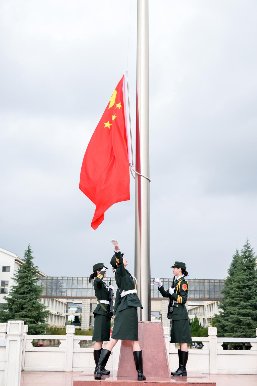 在雄壮激昂的国歌声中,五星红旗冉冉升起,开学典礼正式拉开序幕。