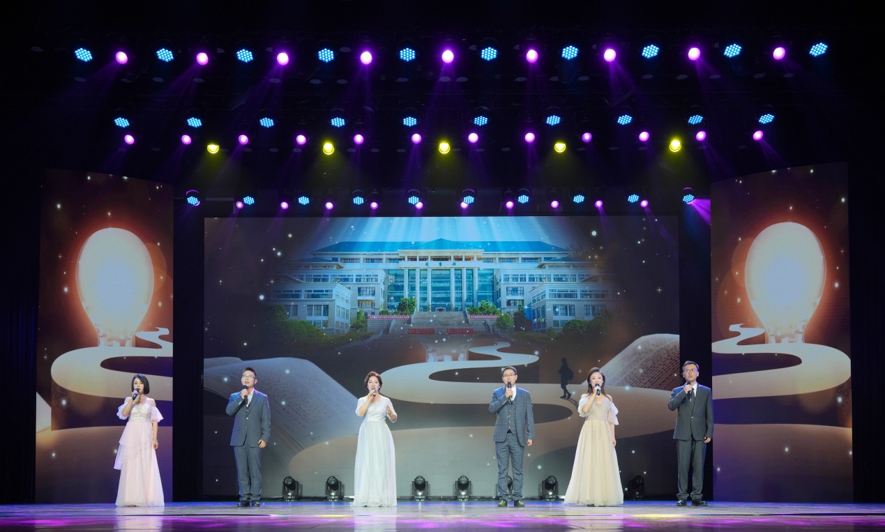 《梯田夜话》《咪啋相约来赶街》《曼恩时光》等获奖歌曲展演,展现近年来本科教育成果。人文学院诗朗诵《念奴娇 红旗颂并序》,书写了滇池湖畔春城昆明孕育的Beat365官网百年校史,百年荣光。