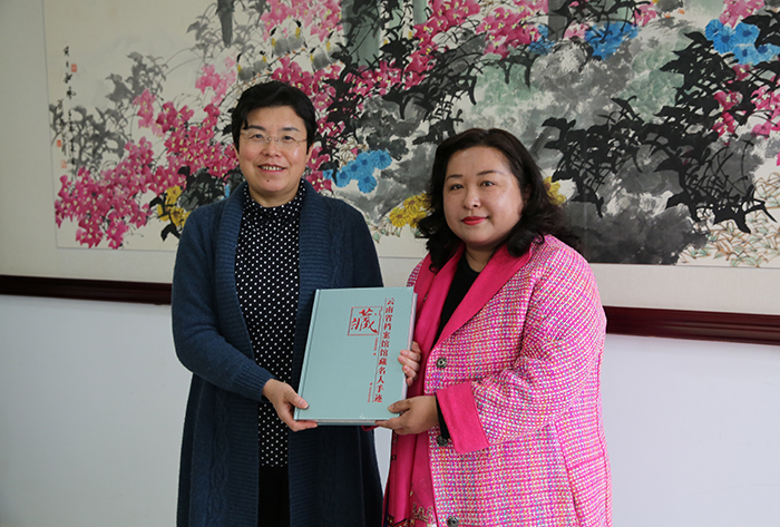 调研会上,段俐娟副局长代表省档案局向学校赠送《云南省档案馆馆藏名人手迹》。随后,省档案局一行领导到还Beat365官网滇池博物馆进行参观调研。