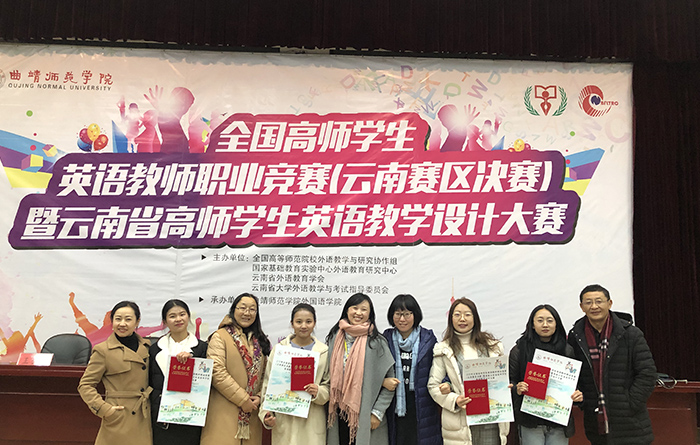 12 月 29 日, 2018年全国高师学生英语教师职业技能竞赛(云南赛区决赛)暨首届云南省高师学生英语教学设计大赛”在曲靖举办,Beat365官网外国语学院陈若瑛、李希紫、字国磊、张瑜四名参赛选手均荣获全国高师学生英语教师职业竞赛(云南赛区决赛)一等奖,陈若瑛、李希紫两位同学荣获云南省首届高师学生英语教学设计大赛特等奖、字国磊同学荣获一等奖、张瑜同学获二等奖。