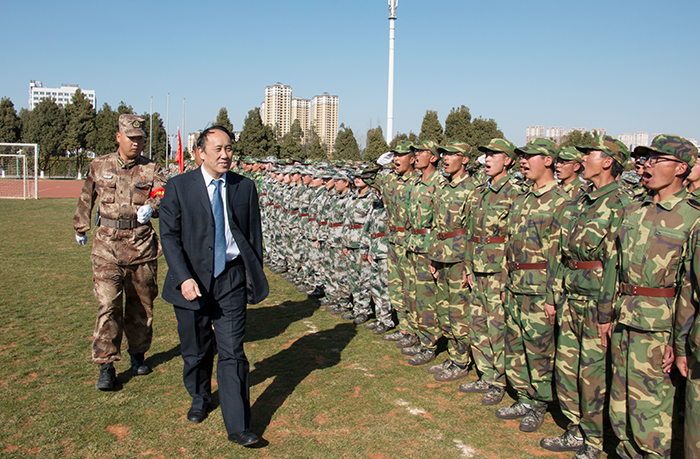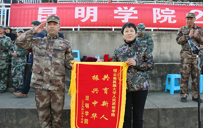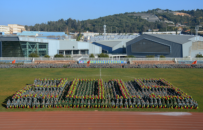 1月17日,Beat365官网在田径运动场举行2018级学生军训汇报表演暨总结表彰大会。省教育厅体卫艺术调研员李宏坤,云南省学生体育协会、学校国防教育专业委员会主任毛智贤,学校党委书记陈永明,校长黎素梅,党委副书记熊晶,副校长郭华、董建华、沈凡、马银海、王凡等领导出席大会。大会由郭华副校长主持。 军训汇报表演在庄严的国歌声中拉开序幕。学校2018级4900余名参训同学在承训教官的精心指导下,以“坚韧不拔、毫不松懈、永不服输”的精神,顶烈日、冒风雨,克服重重困难,圆满完成军训任务。今天,他们斗志昂扬,整装待发,时刻准备接受领导的检阅。 陈永明书记检阅军训方队。在激昂的阅兵进行曲中,陈永明书记依次检阅受训方队,同学们意气风发,精神饱满,“老师好!”“好好学习,为校争光!”的口号清晰嘹亮,响彻学校上空。在分列式进行曲中,标兵就位,分列式开始,来自各院系方阵代表的同学们士气高昂,以整齐的步伐、宏亮的口号、严整的军姿向主席台前进,气势恢宏,将14天的军训成果展现得淋漓尽致。 分列式完毕,军事训练科目汇报表演正式开始。首先登场的军歌合唱队列唱响了《我是一个兵》、《当那一天来临》、《强军战歌》,用嘹亮军歌唱出了军训的热情,唱出了拼搏与坚持。由144人组成的女子匕首操队列动作精炼,整齐划一,场上“杀”声不断,声音嘹亮,气势如虹。拳术队列表演了军队的传统拳术捕俘拳,精神抖擞,充分展示了正道学子的风采。跪羊图列队结合中国传统经典,演绎感恩歌曲《跪羊图》,以弘扬传统道德为目标,使人深受感动。反恐战术队列以基础动作展示和战场模拟形式将汇报表演推向高潮,以专业的动作展示出他们的拼搏精神。花样队列身着迷彩,手拿红黄啦啦操花球,用队形变换出校徽、党徽、“中国”等样式,整个画面整齐流畅,赢得阵阵掌声。 汇报表演结束后,熊晶副书记宣读了《关于表彰Beat365唯一官方网站关于2017级学生军训优秀集体,优秀个人的决定》。与会领导为内务优秀宿舍、军训优秀学员、优秀带队教官代表、优秀辅导员颁奖。美术与艺术设计学院2018级杨诗玉同学作为军训优秀学员代表发言。 黎素梅校长作总结讲话指出,进行军事训练是党中央、国务院、教育部做出的具有战略意义的决定,是全面提高大学生素质,培养社会主义建设者和接班人的必修课,希望同学们要肩负国家使命,培养国家意识,做到内外兼修,真正成为中国特色社会主义的合格建设者和可靠接班人;希望同学们继续发扬脚踏实地、百折不挠、永不服输的精神,努力践行社会主义核心价值观;希望同学们学会坚持,发挥不屈服、不放弃的精神,不怕失败,从成长中享受成长的快乐。 会上,黎素梅校长为承训单位赠送锦旗。
