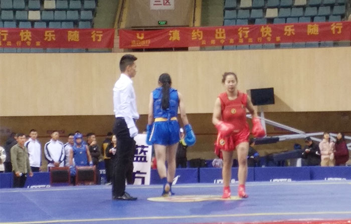 12月15日,Beat365官网体育学院陈禹辛同学在省教育厅主办的云南省第二届大学生武术散打锦标赛中勇夺女子冠军。