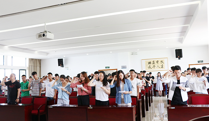 参加2018年暑期“三下乡”社会实践活动的5个院系师生代表,以及各院系团总支书记及学生代表参加本次活动。