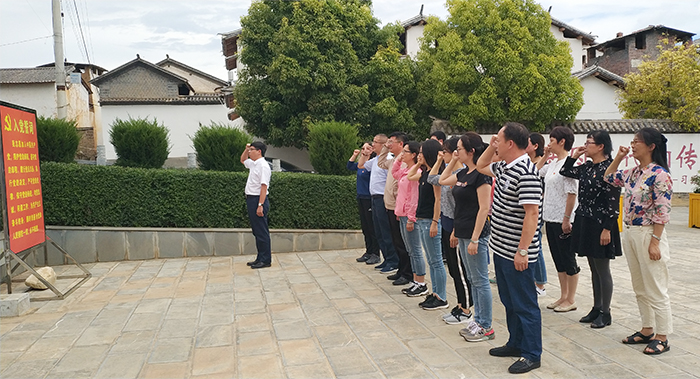 13日下午,考察活动在庄严的重温入党誓词中拉开序幕,张祖武副书记与师生一同庄严宣誓。