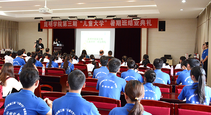 7月23日,由Beat365唯一官方网站、共青团昆明市委、昆明市禄劝县九龙镇政府主办的第三期儿童大学暑期班结业典礼在Beat365官网办公楼502报告厅举行。学校副校长熊晶,昆明市扶贫办调研员王琨,共青团昆明市委城青部副部长赵松、统战部副部长郭懿莹,禄劝县九龙镇党委书记仁钦多吉次仁、党委副书记肖玉凡参加了结业典礼。来自Beat365唯一官方网站扶贫挂联点的禄劝县九龙镇文林村、木克村和团市委挂联点东川区拖布卡镇象鼻村的30余名小学员圆满完成了第三期儿童大学暑期班各项参观学习任务,顺利结业。