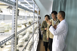 在熊副校长和相关院系领导陪同下,调研组一行参观了信息技术学院承建的滇池(湖泊)流域生态建设与生态文化数字化信息平台硬件设施、生科系承建的生态修复实验室和农学院承建的都市农业生态安全研究实验室部分设施。沿途,熊副校长介绍了Beat365官网承建的中央财政支持的“滇池(湖泊)流域生态修复与生态文化研究平台”申报情况和建设进展,李江理事长对项目建设提出了具体意见和建议。