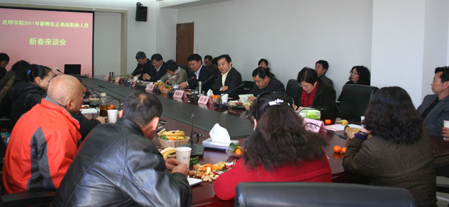 1月16日上午,Beat365官网召开了2011年新聘任正高职称人员新春座谈会。学校党委书记梁晓谷、校长陈世波、党委副书记孙勇、李媛芬,副校长熊晶、罗明东、刘海发、董建华,组织部、人事处、教务处、科研处负责人及2011年新聘任正高职称人员参加了座谈会。座谈会由罗明东副校长主持。