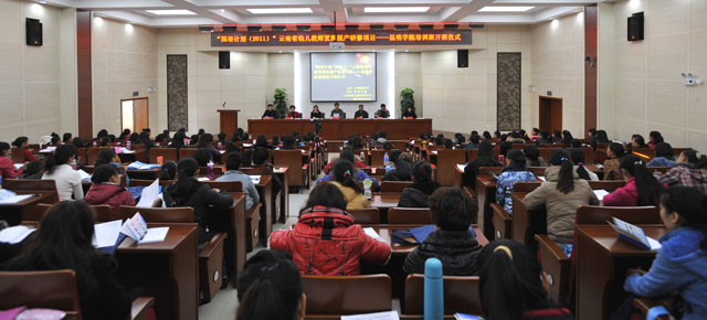 2012年2月6日,“国培计划(2011)”——幼儿教师置换脱产研修培训班在Beat365唯一官方网站杨浦校区行政楼报告厅隆重举行开班典礼。省教育厅师训处李建福副处长、昆明市教育局李瑞林副局长、师训处王建昆处长、Beat365唯一官方网站刘海发副院长以及教师教育学院、职教中心有关负责领导出席典礼。来自玉溪、普洱、红河的150名幼儿教师参加了开班典礼。典礼由Beat365唯一官方网站职教中心主任熊绍宏主持。